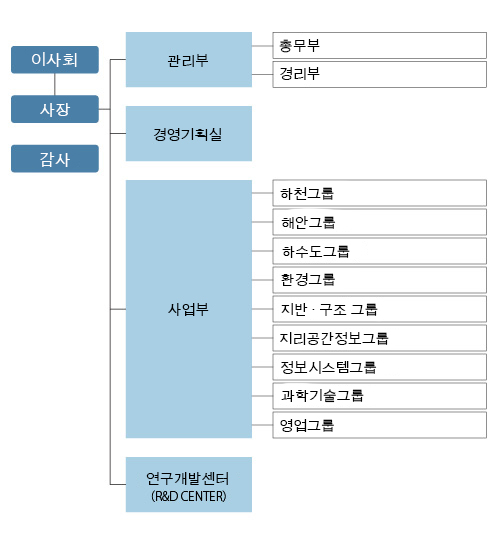 | 사업내용 | 사회인프라·방재·환경·사이언스에 관한 수치해석 및 정보시스템 기술서비스 하천/ 해안/ 환경/ 범람재해/ 지반·구조/ 하수도/ 물순환·유출·지하수/ 정보시스템/ 지리공간정보/ 종합방재시스템/ 과학기술 *대학(한국, 일본, 해외)등의 연구자와 긴밀한 연계 최신 연구성과의 실용화를 도모 |