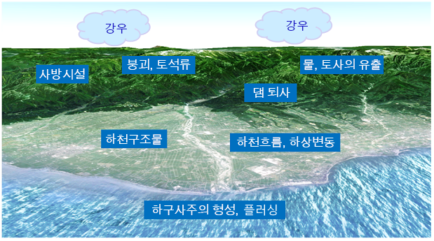 토석류의 해석에서는 토석류-소류상집합유동-소류구간의 해석에 대응이 가능.
