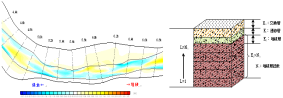 교각·수제·보 등의 구조물이 하상변동에 미치는 영향검토, 매립토의 효과검토, 하도굴착의 영향검토, 하구사주의 플러싱검토 등 하천의 토사이동에 관련된 다양한 해석을 실시하고 있습니다. 상세영역·단기간을 대상으로 하는 해석부터 광영역·장기간을 대상으로 하는 해석까지 다양한 공간 및 시간 스케일의 하상변동해석을 실시하고 있습니다.