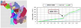 물과 토사 또는 물과 토석이 일체가 되어 유하하는 토석류의 해석을 실시하고 있습니다. 퇴적물, 붕괴, 자연댐 등으로 부터의 토석류의 발생조건 등의 검토, 토석류의 확산해석, 유하·범람해석, 슬릿사방댐·격자형댐 등의 토석류 대책시설 등의 효과검토를 실시하고 있습니다.
