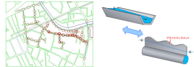 공공 하수도시설의 효율적인 개축·갱신을 위해 우수 유출해석은 매우 중요합니다. 현황의 평면도나 유량계산서 등을 기초로, 관로모델의 구축과 현황을 재현하여, 강우시 관내의 흐름이나 범람 또는 침수상황을 파악합니다. 그 후에 계획시설을 모델로 적용한 해석을 실시함으로써, 기존 관거의 갱생이나 부설교체 등에 의한 관내의 수위저하·범람저감효과를 확인하여, 보다 적정한 계획이나 실시설계에 기여합니다.