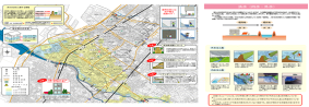 최근 기록적인 호우가 빈발하여 시급한 침수대책이 필요한 지금, 일어날 침수를 미연에 방지하는 대책과 동시에 침수피해를 최소한으로 억제하기 위한 소프트대책의 정비도 진행되고 있습니다. 하수도의 우수배수능력을 초과하는 강우가 생길 경우, 침수가 발생할 위험성이 있는 구역에 대해서 내수해석을 실시하여, 이 결과를 기초로 피난경로, 피난장소, 정보전달 방법 등의 정보를 이용하여 지역주민을 위한 내수 해저드맵을 작성합니다. 또한 내수 해저드맵과 기존의 홍수 해저드맵을 통합한 해저드맵을 작성합니다.