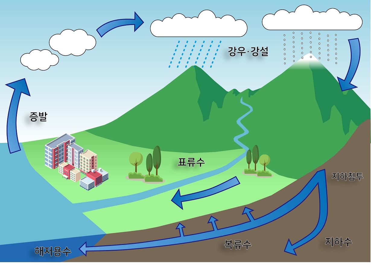 물순환 과정으로, 강수-적설-융설-증발산과 같은 프로세스의 모든 부분을 고려할 수 있음.