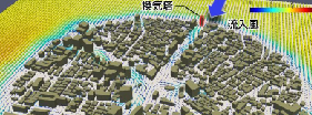 PM2.5 및 광화학 옥시던트 등 화학 반응을 수반하는 물질의 광역에서의 확산 현상을 WRF에 의한 기상 분석, 화학 수송 모델 CMAQ 의한 확산 분석을 통해 검토합니다. 또한 시가지 등 건물의 영향과 지형의 영향을 고려하여 몇 ㎞ 범위에서 농도 확산도 CFD에 의해 검토합니다. 대기 환경 개선 및 환경 평가, 인근에 미치는 영향 평가 등에 적용 가능합니다.