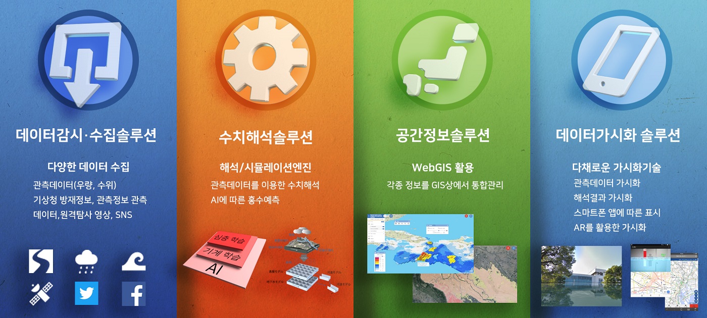 인터넷상에서 공개된 기상 등의 관측치 · 해석치정보, 재해관련 속보정보 외에 각종 계측기기에서 취득한 데이터를 활용하여 감시, 수집하는 시스템을 구축합니다.