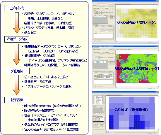 ・GlobalMap(지구지도)의 표고, 토지피복데이터, 위성강우데이터GSMaP(JAXA제공)