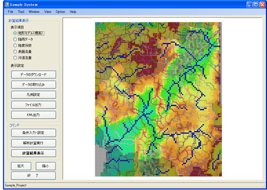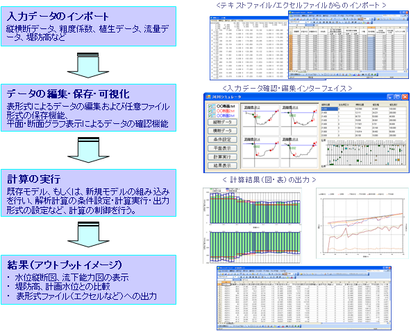 유출해석을 실시하여 측량산정, 해석결과를 가시화, H-V식 등의 그래프표시를 실시
